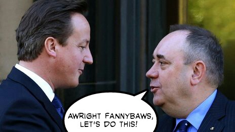 • I’m finding it disgusting to be honest. Cameron personally asking Obama to get involved (which was also leaked) as well as many other celebrities to stick their noses in. There’s David Beckham even doing it now. Why? Because he has an interest in a whisky company who believe Cameron and his big business bullshit. At the end of the day, this is all about landowners and big business looking after their interests. I’m working class – a small man – and its people like me and the children of the future who will benefit from this. It’s about having a voice and being counted, instead of being drowned out. It’s about proportional representation and if it doesn’t happen, I’m seriously thinking about leaving Scotland as I can bear to see where the country will end up after this. Christ man, they still haven’t even made up their minds on what extra powers they would give us if we voted No. It’s all lies and deceit. Excuse my rants, man. I just feel very passionate about this.