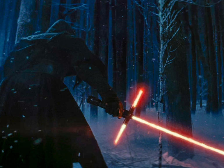 The trailer shows us a mysterious dark cloaked figure in a forest. Presumably this is a villain. This is confirmed when he lights up his red lightsaber which contains a lame addition in the forum of little guards on the handle. No doubt the character’s name with be ‘Darth’ something or other.